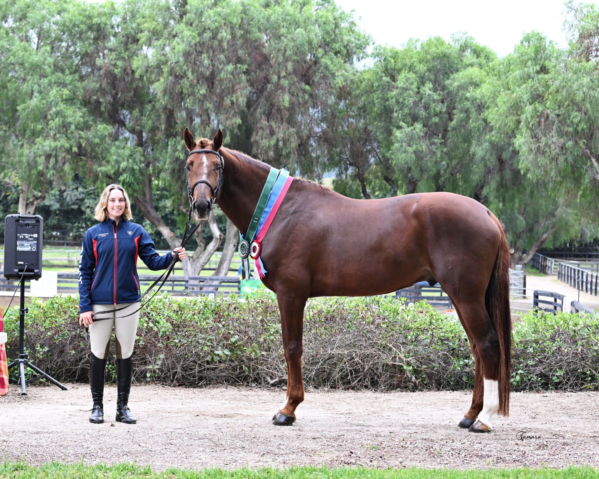 Licensed as a three year old by the German Oldenburg Springpferde Verband and as a 4 year old in 2025 by the Holsteiner Verband, Emerelo BF contested the 2025 North American Sporthorse Stallion Test for his first approval year in October 2025 scoring over 8's across the board for his jumping technique, scope, and rideability. Emerelo BF (2021) was bred in Europe and imported as a foal to bring important bloodline improvements to the Branscomb Farm breeding program. Sire Emerald van't Ruytershof (Diamant de Semilly - Carthago) career highlights include being a finalist at the 2016 Rio Olympics, winning the 2016 Rotterdam Nations Cup, and finishing second in the 2016 World Cup Final. He is now retired from competition but is highly sought after as a sire, with many of his offspring competing at the highest levels of show jumping.